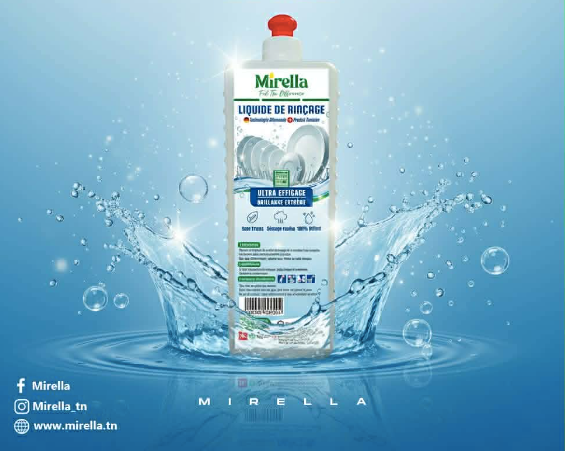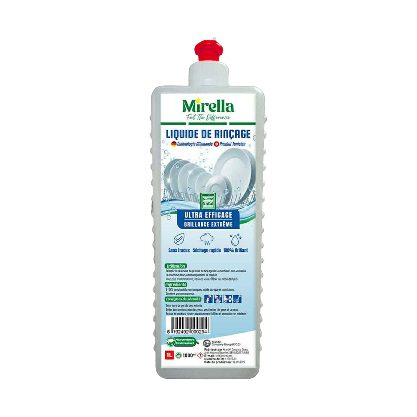 Le liquide de rinçage Mirella complète parfaitement l’action de la poudre lave-vaisselle