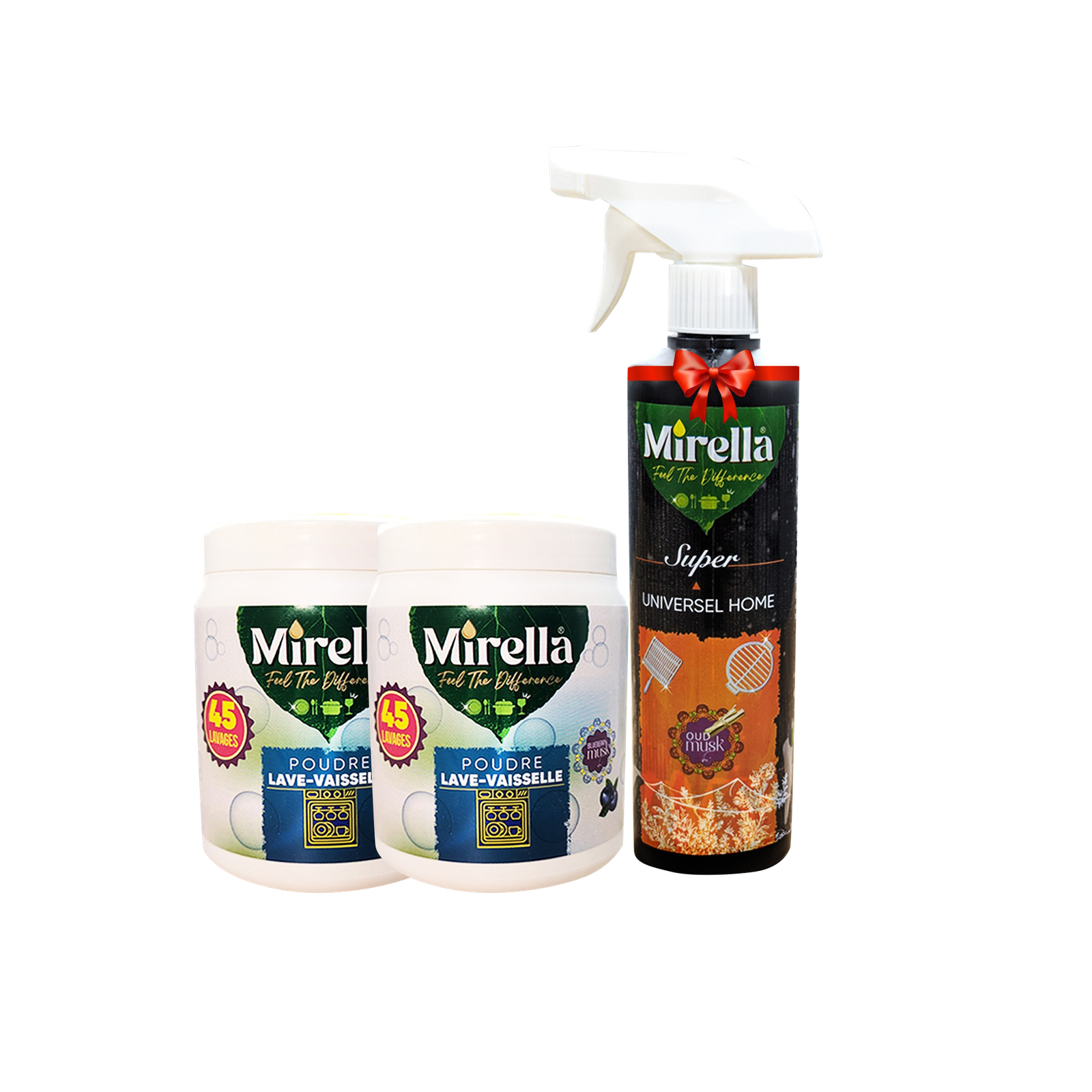 Le Pack Mirella 3in1 est idéal pour les foyers qui utilisent intensivement leur lave-vaisselle tout en souhaitant garder une cuisine parfaitement propre.
